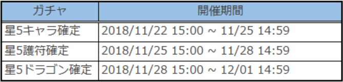 ②「★5キャラ確定」「★5竜輝の護符確定」「★5ドラゴン確定」の期間がある