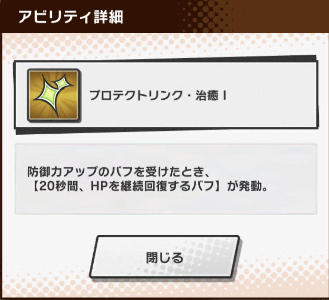防御力アップバフは、即死級ダメージを耐えるために使用したり、防御力アップバフを発動条件とする「プロテクトリンク」などの発動もできるため、こちらも使い道があります。