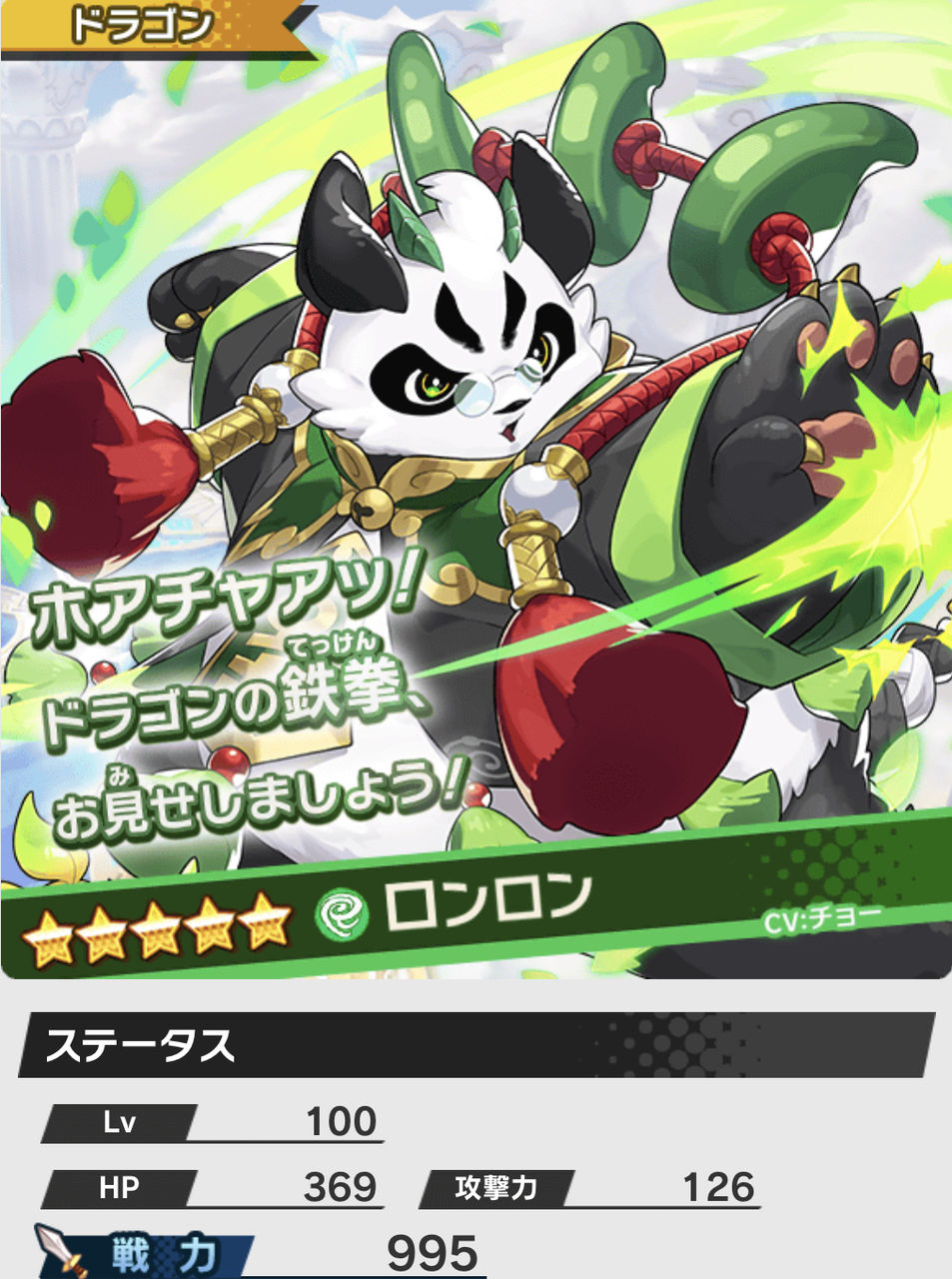 続いて、ドラゴン(?)のロンロンを見ていきましょう。