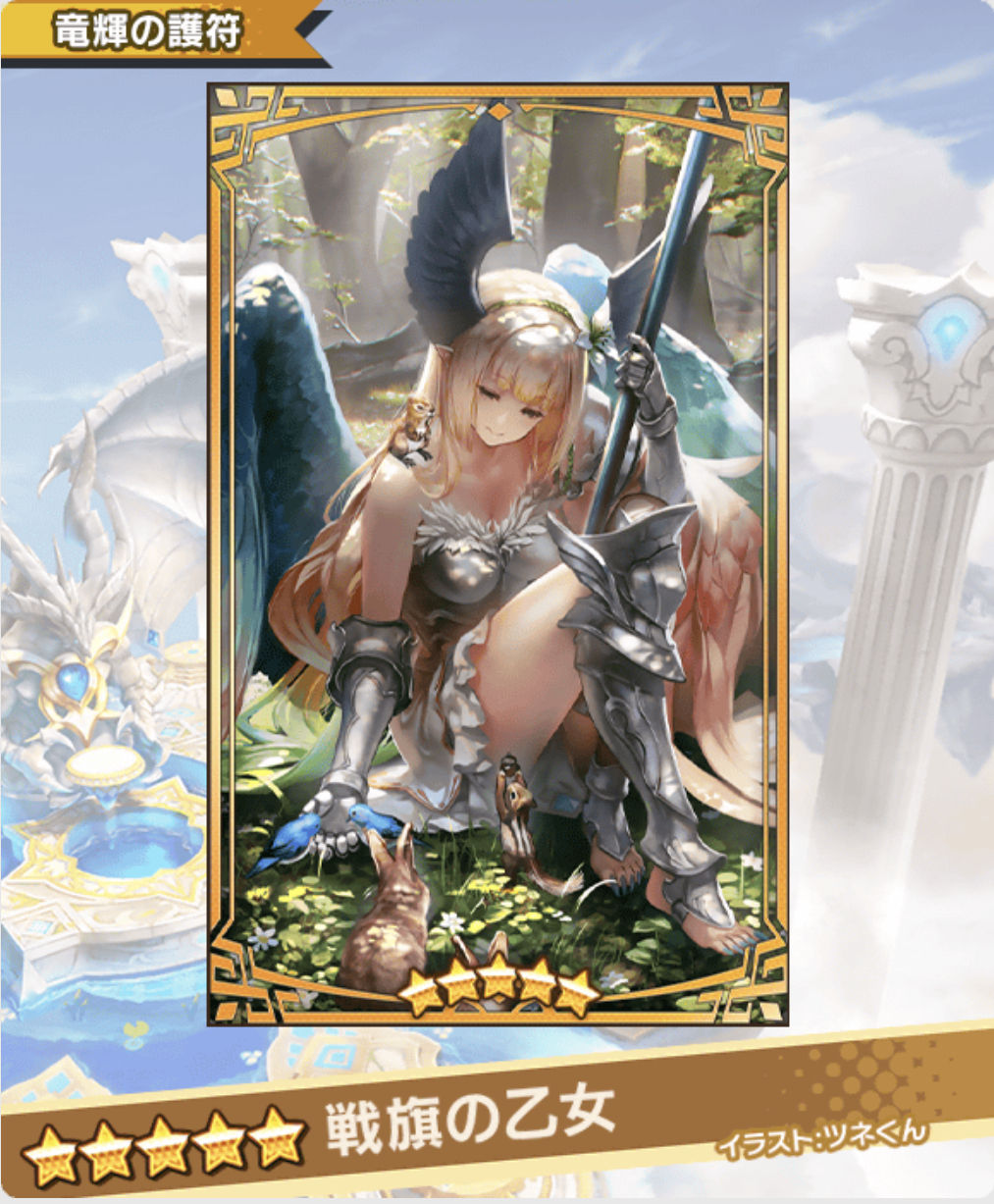 次は新規追加の竜輝の護符を見ていきましょう。戦旗の乙女