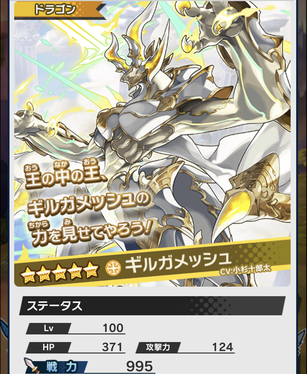続いて、ドラゴンのギルガメッシュを見ていきましょう。
