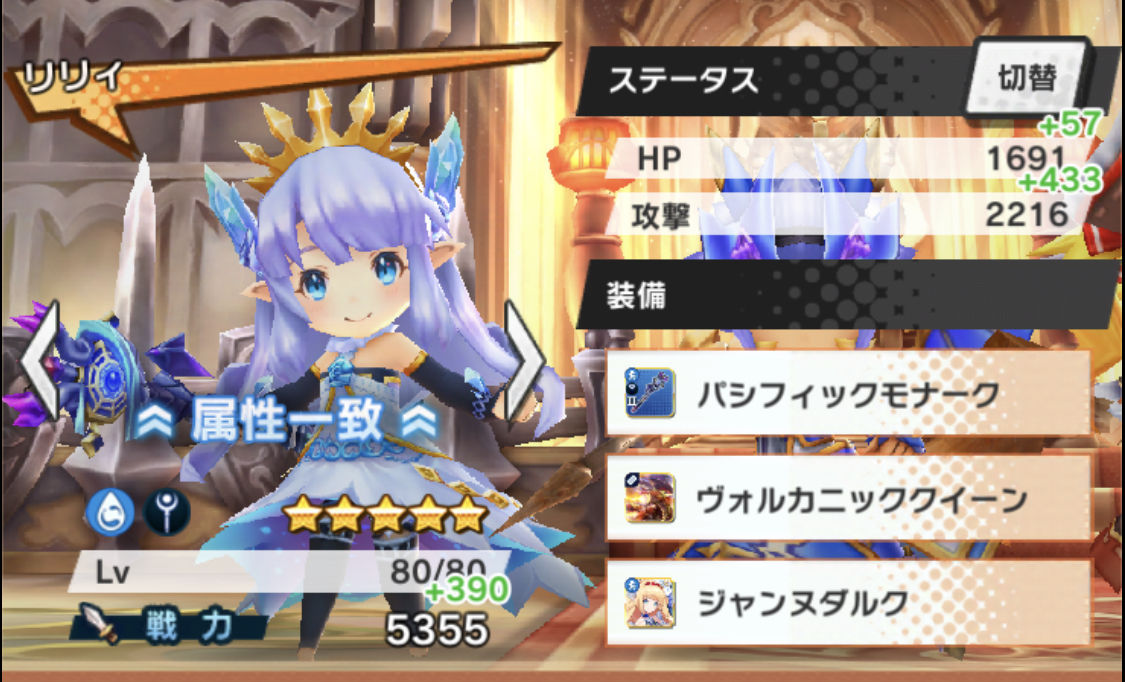 本来であれば、火力枠であるリリィはパシフィックモナークを装備したいといころなのですが、ティアーズロッドのような防御力アップスキルが無いため、足切りを耐えることができなさそうです。