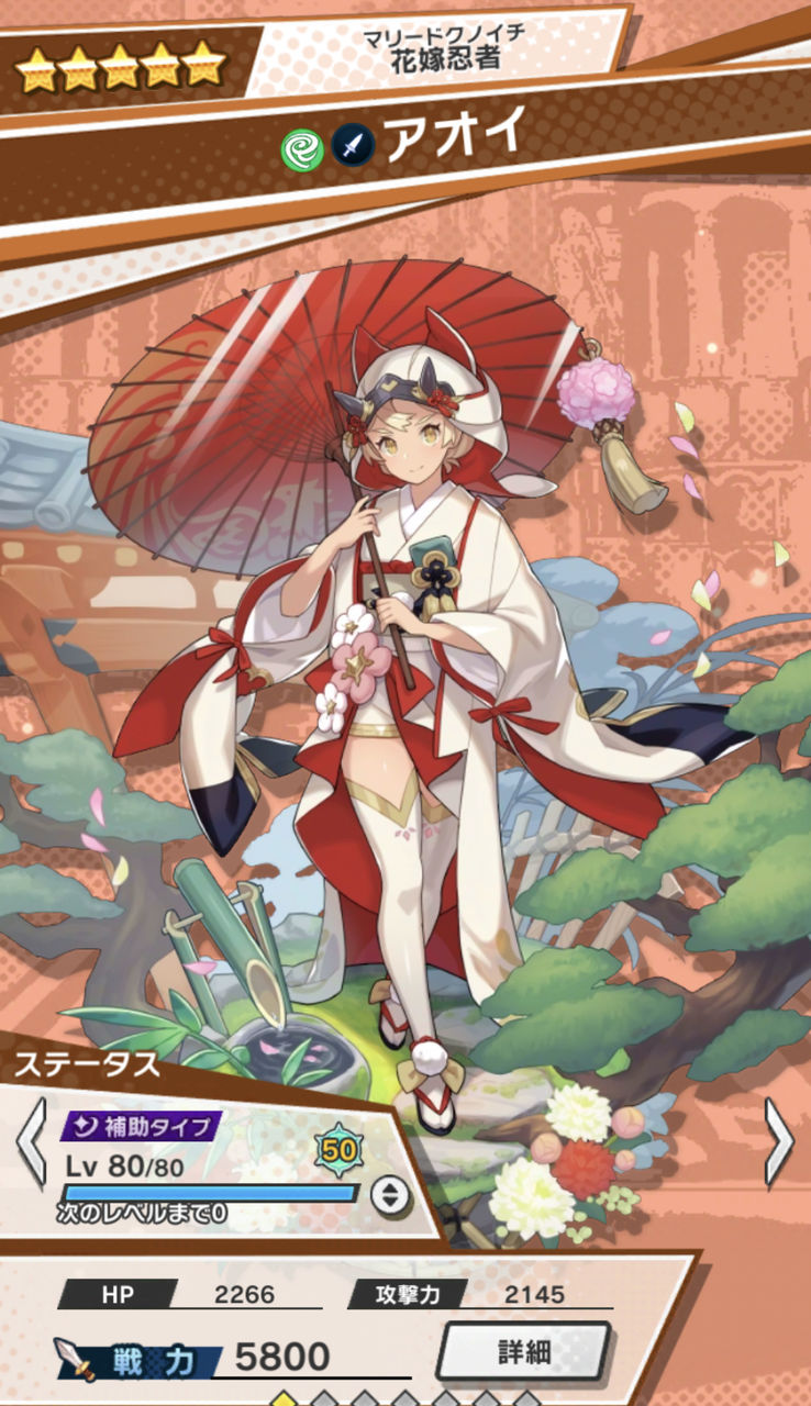 風属性の★5短剣キャラとしてはウエディングアオイが初の実装だったので、風属性の戦力増強のためにウエディングエルフィリスと同じタイミングでマナサークル全解放に踏み切りました!