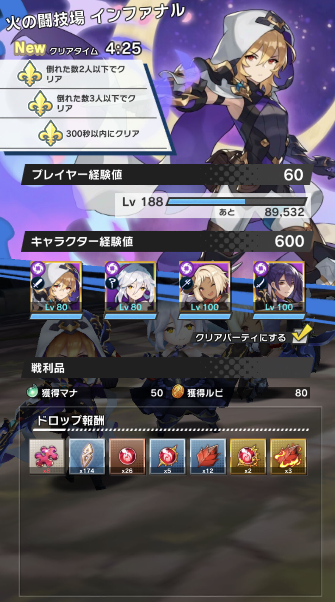 ここに書いたパーティ以外にもいろんな攻略があると思うので、もしもっと良い編成があったよ!という方がいれば、是非コメント欄に記載していってください!