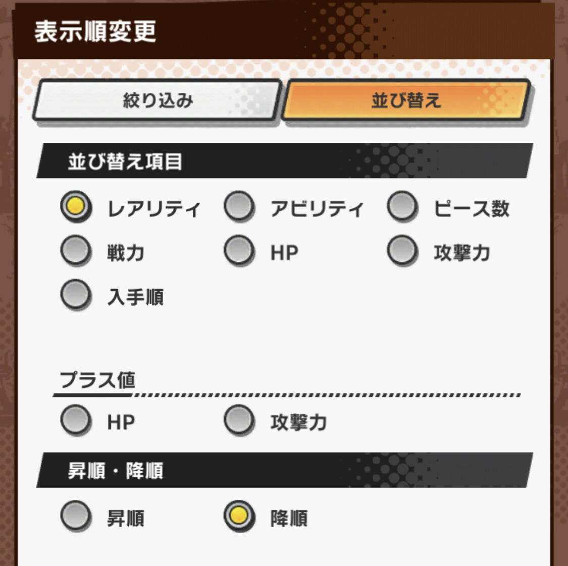 当然どの護符にどのユニオンボーナスが設定されているのか知りたくなるのですが、なんと護符のソート機能にユニオンボーナスの項目が無い!