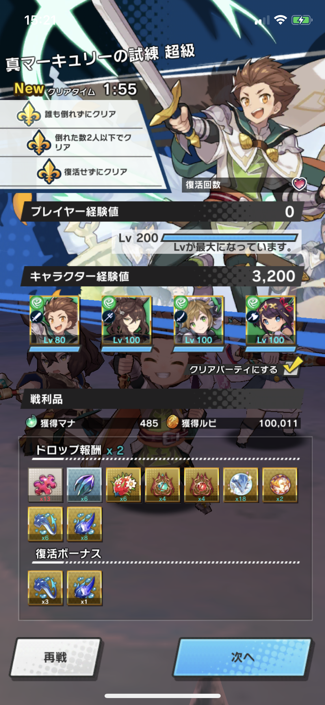 ・・・さらにこの編成で周回していたところ、20周目くらいで全滅してしまいました。